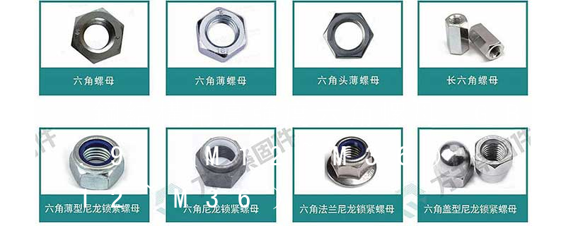 對于六角螺帽,常用的標準有:GB52、GB6170、GB6172和DIN934,對于它們之間的主要區別有:GB6170的厚度要比GB52、GB6172和DIN934來的厚,俗稱為厚螺帽。另外就是對邊上的區別,M8的螺帽系列中DIN934、GB6170、GB6172的 M12螺母尺寸如下:規格:M12;厚度:10.8mm;對角:20mm;對邊:18mm 螺母是將機械設備緊密連接起來的零件,通過內側的螺紋,同等規格螺母和螺栓才能連接在一起,例如M4-P0.7的螺母只能與M4-P0.7系列的螺栓進行連接(在