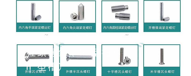 1)開槽普通螺釘多用于較小零件的連接。它有盤頭螺釘、圓柱頭螺釘、半沉頭螺釘和沉頭螺釘。盤頭螺釘和圓柱頭螺釘的釘頭強度較高,瑁在普通的部件連接上;半沉頭螺釘的頭部呈弧形,安裝后它的頂端略外露,且美觀光滑,一般 防止反轉松動。槽型:十字槽、十字割槽、米字槽、梅花槽、一字槽、三角槽、六角槽、方形槽、六角帶柱槽、H型槽。