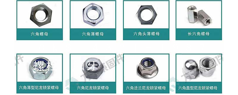 螺母常用的國家標準有《GB41 Ⅰ型六角螺母——C級》、《GB6170 Ⅰ型六角螺母——A、B級》、《GB6171Ⅰ型六角螺母—細牙—A、B級》、《GB6172六角薄螺母——A、B級—倒角》、《GB6173六角薄螺母——細牙—A、B級》;