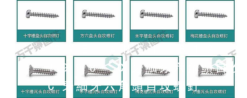 自切自攻螺釘有以下幾種型式:十字槽盤頭自切自攻螺釘,十字槽沉頭自切自攻螺釘。十字槽半沉頭自切自攻螺釘,六角頭自切自攻螺釘。3、自擠自攻螺釘(自攻鎖緊螺釘)自擠自攻螺釘的螺紋一般為機螺紋,很少采用自攻螺紋。在扳擰