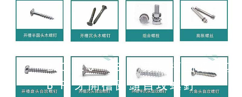 1.機螺釘 2.自攻螺釘 3.鉆尾螺釘 4.墻板釘 5.纖維板釘 6.木螺釘7.六角木螺釘 8.不脫出螺釘 9.組合螺釘 10.微型螺釘 11.家具螺釘 12.電子螺釘 13.鏈帶螺釘頭型 :1.六角頭(hexagon head)2.六角頭法蘭面(hexa