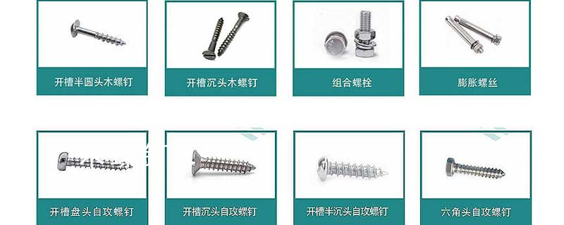開槽圓頭木螺釘(GB/T 99-1986) 1.6-10mm 開槽沉頭木螺釘(GB/T 100-1986) 1.6-10mm 開槽半沉頭木螺釘(GB/T 101-1986) 1.6-10mm 十字槽圓頭木螺釘(GB/T 950-1986) 2-10mm 十字槽沉頭木螺釘(GB/T 951-19 ⑤ 木螺釘因頭型和槽形不同而分成許多品種。頭型有圓頭、沉頭、半沉頭等幾種,頭部槽形為開槽(一字槽)和十字槽兩種,見GB99~101、GB950~952。⑥ 自攻螺釘a) 普通自攻螺釘:螺紋符合GB5280,螺距大,適合在薄鋼板或銅、鋁、塑料上