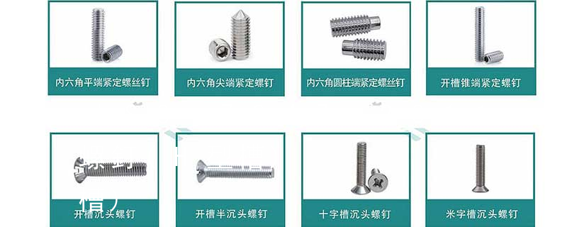 1)開槽普通螺釘多用于較小零件的連接。它有盤頭螺釘、圓柱頭螺釘、半沉頭螺釘和沉頭螺釘。盤頭螺釘和圓柱頭螺釘的釘頭強度較高,瑁在普通的部件連接上;半沉頭螺釘的頭部呈弧形,安裝后它的頂端略外露,且美觀光滑,一般