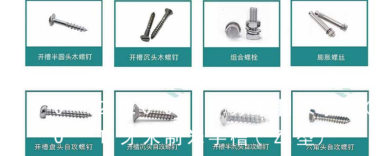B:球面圓柱頭; C:圓柱頭; F(K):沉頭; H:六角頭;HW:六角頭帶墊圈; O:半沉頭; P:平元頭; R:半元頭;PW:平元頭帶墊圈; T:大扁頭; V:蘑菇頭;④ 螺釘牙型 A:自攻尖尾(日標(biāo)第1種)疏 主要分類包括普通螺絲、機(jī)螺絲、自攻螺絲和膨脹螺絲三種。 有頭螺釘Cap screw 過(guò)去限于全牙的扣件。 六角頭螺釘Hex cap screw與大六角螺栓Hex bolt 顧名思義為頭部為六角型的外螺紋扣件,設(shè)計(jì)為使用扳手轉(zhuǎn)動(dòng)。依照ASME B18.2.1標(biāo)準(zhǔn),六