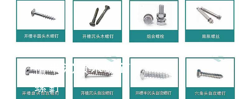 木螺絲有十字槽沉頭、十字槽半沉頭、十字槽圓頭、開槽(一字槽)沉頭、開槽半沉頭、開槽圓頭、六角頭等幾種,公稱直徑有1.6、2、2.5、3、3.5、4、5、6、7、8、10等系列,長度有6、8、10、12、16、20、25、30等
