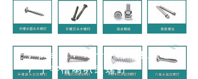 Bugle 喇叭頭Truss 盤頭帶墊Pozi 米制槽Phill 十字槽Serra-tion 墊下帶花Flower Head 開花頭6-bobes recess 內梅花Piston bolt 活塞螺釘Winding bolt 線圈螺釘Hexagon head bolts-full thread 六角頭螺栓 全螺紋Carriage bolt 馬車螺栓Squa