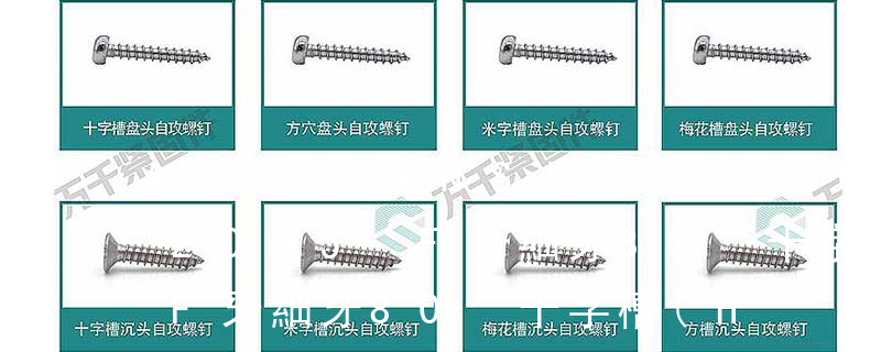 (鐵板牙自攻螺絲) B-2: Plastic Tapping Screw. (塑膠用,自攻螺絲) C: Wooden Screw : 木工螺絲 D: Drywall Screw :水泥墻螺絲 E: Self Drilling Screws鉆尾螺絲(不銹鋼鉆尾螺絲,復合材料鉆尾螺絲) F:膨脹螺絲,四片膨脹螺絲又